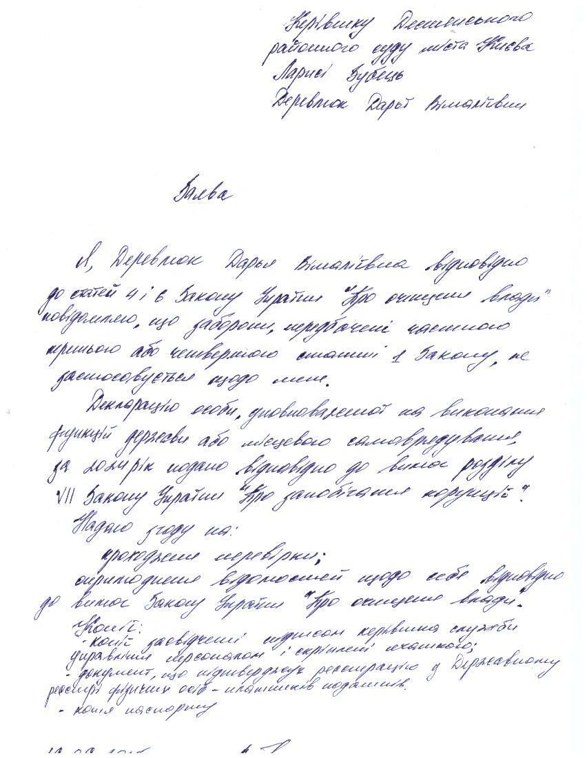 Повідомлення про початок перевірки Деревлюк Д.В.